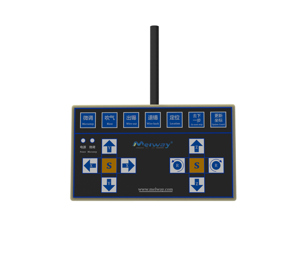 手持式示教手柄用于焊錫機(jī)的運(yùn)動(dòng)控制、編寫焊接程序及手動(dòng)調(diào)試。